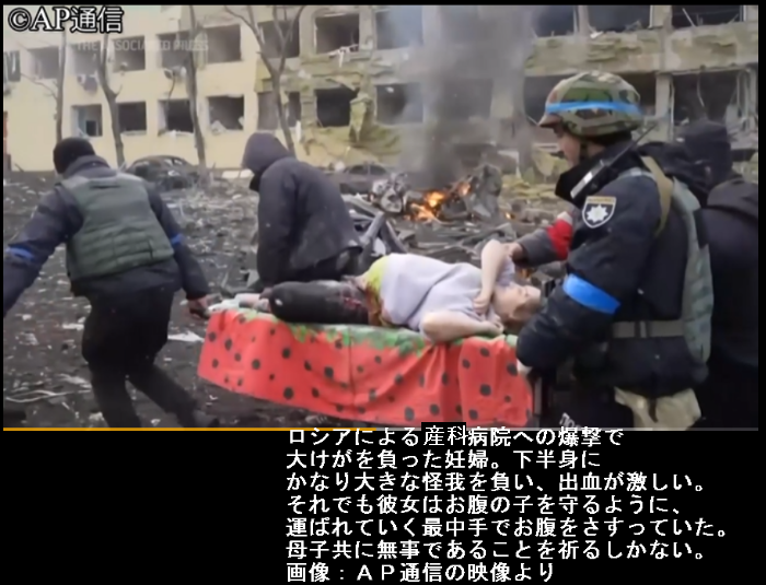 ![]() その後、この妊婦と赤ちゃんは共に死亡したと伝えられました。 妊婦は骨盤が粉砕されていて、お腹の子が死亡、その事実を知った後で 「私を殺して!」 と叫んだそうです。 この現実を、私たちは後世に語り伝えなくてはいけません。 彼女は、この世に生まれてくることがなかったわが子に、 きっとこう詫びていたのだろう。 「ごめんね、ごめんね、ごめんね」 と。 Pregnant woman seriously injured in Russian bombing of maternity hospital She suffered severe injuries to the lower half of her body. And she is bleeding considerably. As she was being carried away, she put her hand on her stomach and stroked it as if to protect her baby. We can only hope that both mother and child are safe. Later, both this pregnant woman and her baby were reported to have died. The pregnant woman had a crushed pelvis. After she learned that her baby had died, she Kill me!" We must tell this reality to future generations. To my child who was never born into this world I am sure she apologized in this way. "I'm sorry, I'm sorry, I'm sorry." |
