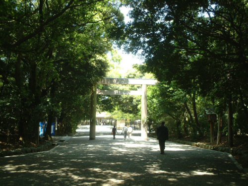 ![]() ![]() 熱田神宮 奥に見えるのが本宮 今も入らずの森があるといわれます 巫女さんが歩いていました 巫女は外国人の憧れの的だとか