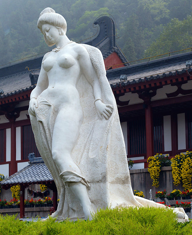 山口県の二尊院に伝わる楊貴妃伝説と楊貴妃の墓の写真下記は中国の華清池に建てられている楊貴妃入浴像 西安の東郊外 元は池の中にありましたが政府要人の「道徳上どうかと思う」とかいう 発言が元で現在は陸上に。 そのせいで記念写真に一緒に写ることができます。 ところが困ったことに、3メートルほどあるこの楊貴妃の裸像にへばりついて、 背伸びして楊貴妃のおっぱいを触ろうとする人が後を絶たないのです(笑)。 もちろん、こんな浅はかなことをするのは男だけに決まっています。 真っ白な入浴像で顔も大変きれいで、スタイルも抜群、豊満で何とも言えず色香が ありますから分からないではありませんが。 実際の楊貴妃も豊満な肉体であったらしいです。 玄宗は自分の息子の嫁を奪い取ったくらいですから やはり絶世の美女だったのでしょう。 できれば私も触ってみたいです(爆) ![]() |
